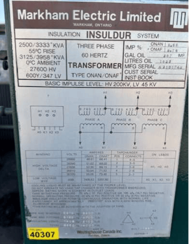 2500/3333 KVA 27600Y Primary, 600Y/347 Secondary, Markham transformer, ONAN/ONAF