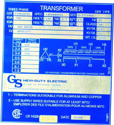 750 KVA 600 Primary, 480Y/277 Secondary Hevi-Duty, 3-phase